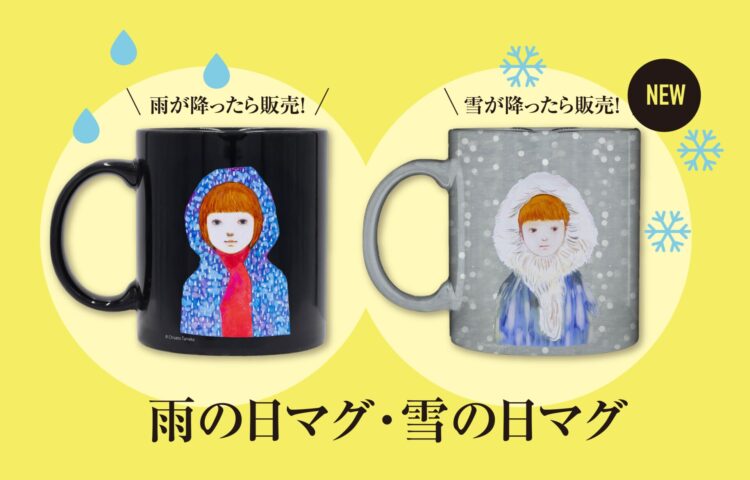 雨天の場合のみクリスマスマーケットin光の街・博多、光のフォレスト、KBC FESTA de SANTA、TENJIN CHRISTMAS MARKETの4会場で販売をされるマグカップ。雨の日に想いを込めた田中千智さんの絵が印象的。
