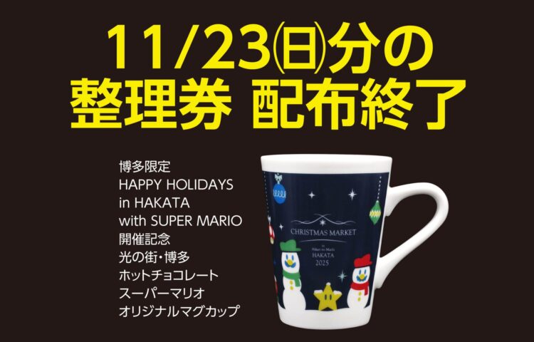 11/23(日)分 整理券配布終了のお知らせ